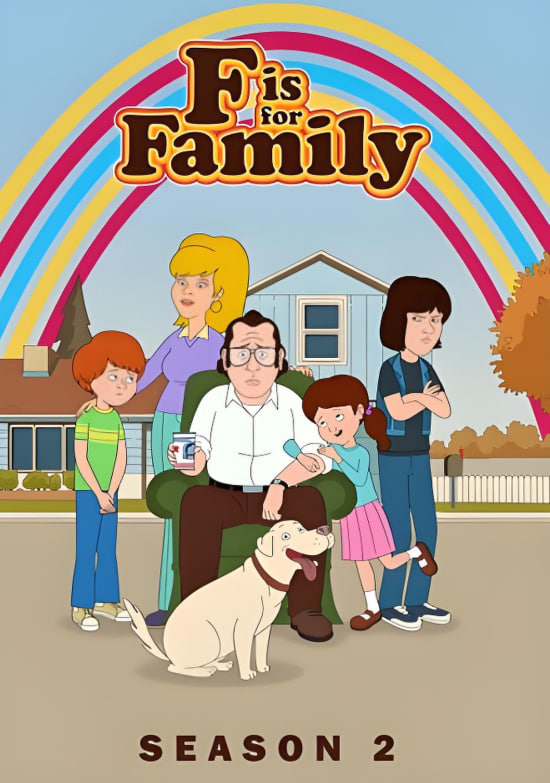 这一季当中的话题分别由性别歧视,性取向探索,职场欺凌,家庭主妇纠结,婚姻痛苦,青少年成长,中产阶级挣扎 ,等等组成,很多观众表示,看这个剧是对婚姻和家庭最大的恐惧。F is for family 是美国越南战争之后的一个家庭黑色喜剧。尤其的亮点是:毒品,钱,摇滚乐。第二季不如第一季好看但是仍然有很多笑点,并没有马头男那么经典但绝对值得一看。这个动画算不上是喜剧动画,应该说是正剧更恰当一些,用动画的形式再现了七十年代的美国。越战,各种社会顽疾,维权运动,贫富差距等等,都在这个动画里有所体现。虽说主演是由喜剧演员Bill Burr配音的,但却掩盖不了整部片子里浓浓的悲观情调。 展开全部
