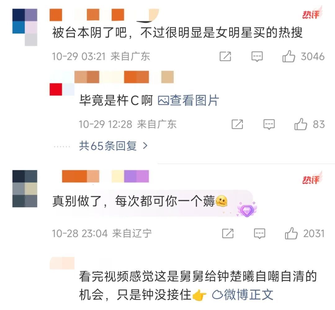 评论区下也有网友留言表示,王耀庆疑似是被台本做局了,还有人说也可能是故意为之,想要引导钟楚曦自嘲洗白,这事儿就算过去了,结果她自己没接住。