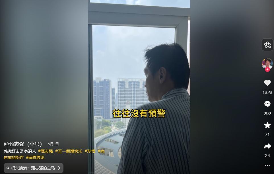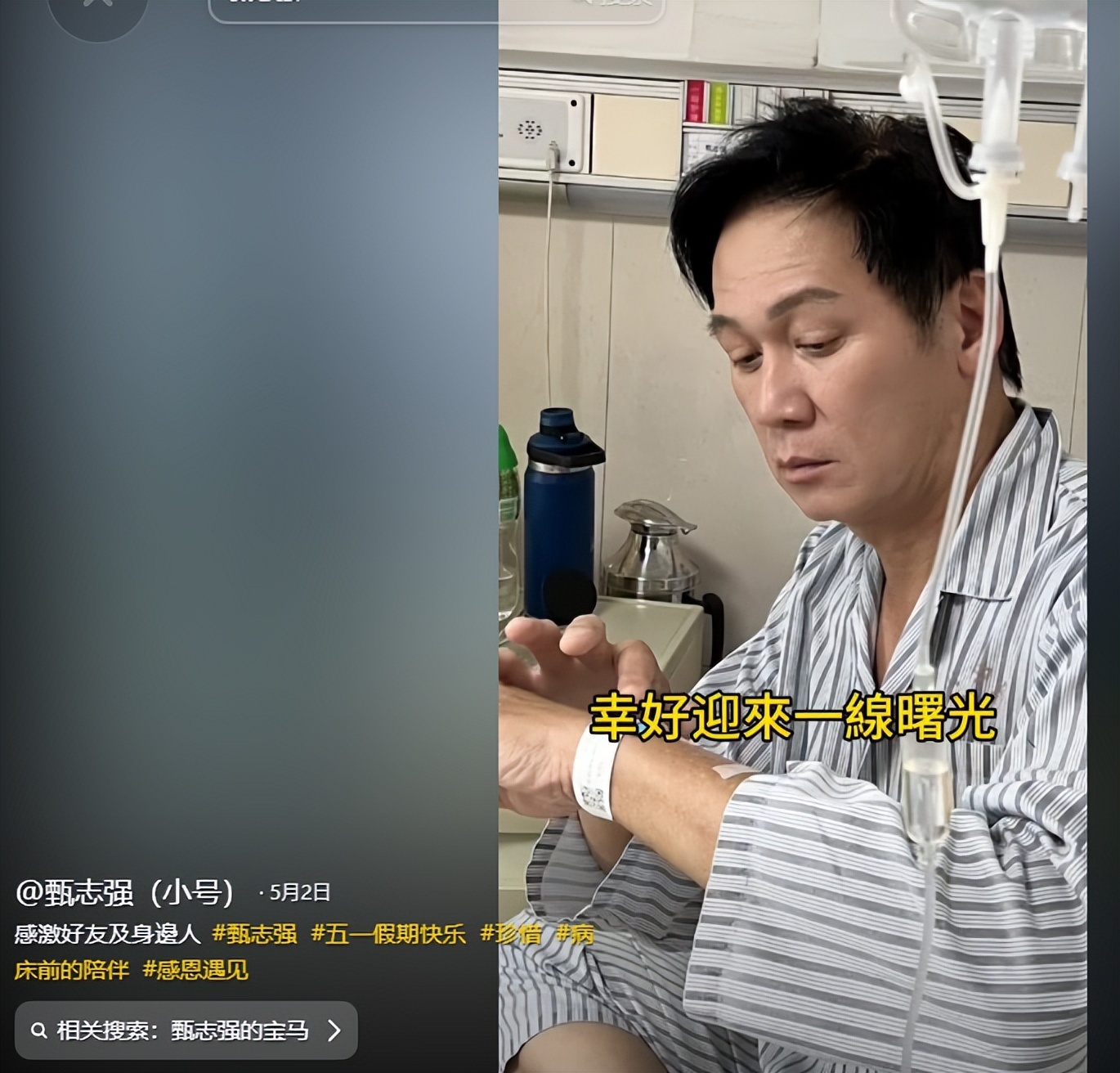 消息一出,网友翻出他今年5月住院时的视频:穿着病号服的甄志强靠在床头挂水,镜头里的他面色憔悴,说出那句后来被反复提及的话:"危险的出现,往往没有预警。"