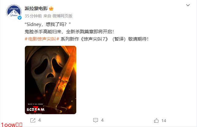 《惊声尖叫7》首支预告曝光 2026年2月上映